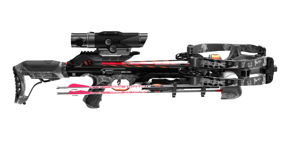 Introducing the Hyper Raptor BCX, an advanced hunting crossbow seamlessly integrating cutting-edge tech for exceptional performance. As the newest member of our lineup, it launches 20” HyperFlite™ arrows at an impressive 425 fps*, delivering powerful kinetic energy for effective penetration.