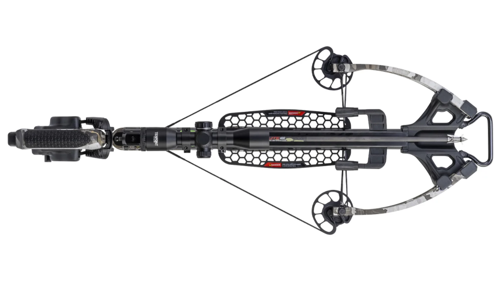 Featuring safe, silent, tangle-free crank de-cocking combined with category-leading accuracy and a narrow front-end known for incredible reliability, the Titan X delivers more features than ever before, defining the ultimate value crossbow with its newly designed stock and barrel configuration, lighted scope, and 400 FPS performance while maintaining the Titan’s legendary durability, reliability, and accuracy as a top-selling crossbow.