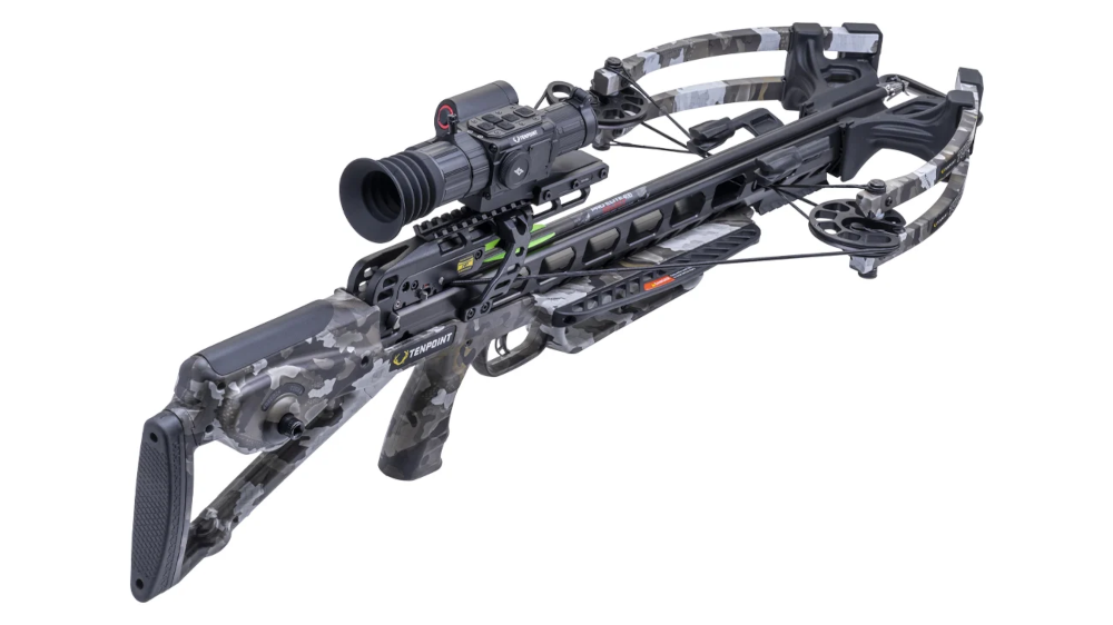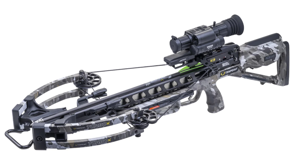 The Turbo X crossbow received the full accuracy treatment thanks to the S2 Trigger, Scope Struts, and Vision Scope, which combine to drive nock-breaking long-range accuracy out to 100-yards.