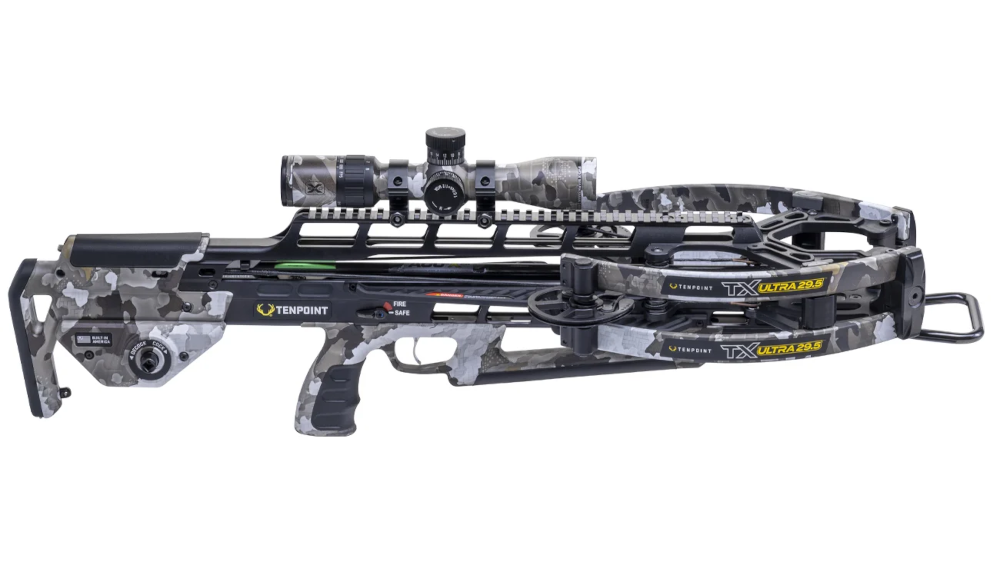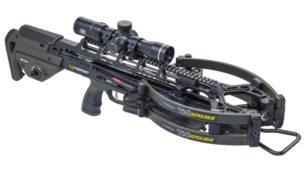 Measuring 29.5″ short and 6.5″ narrow, the TX Ultra 29.5 shoots 460 FPS and features Twin-Riser Technology™ (TRT), a custom TriggerTech Trigger, AR-Style Ambidextrous Thumb Safety, and multiple precision-engineered accuracy advancements capable of 3″ groups at 100-yards, creating the most accurate crossbow in its class.