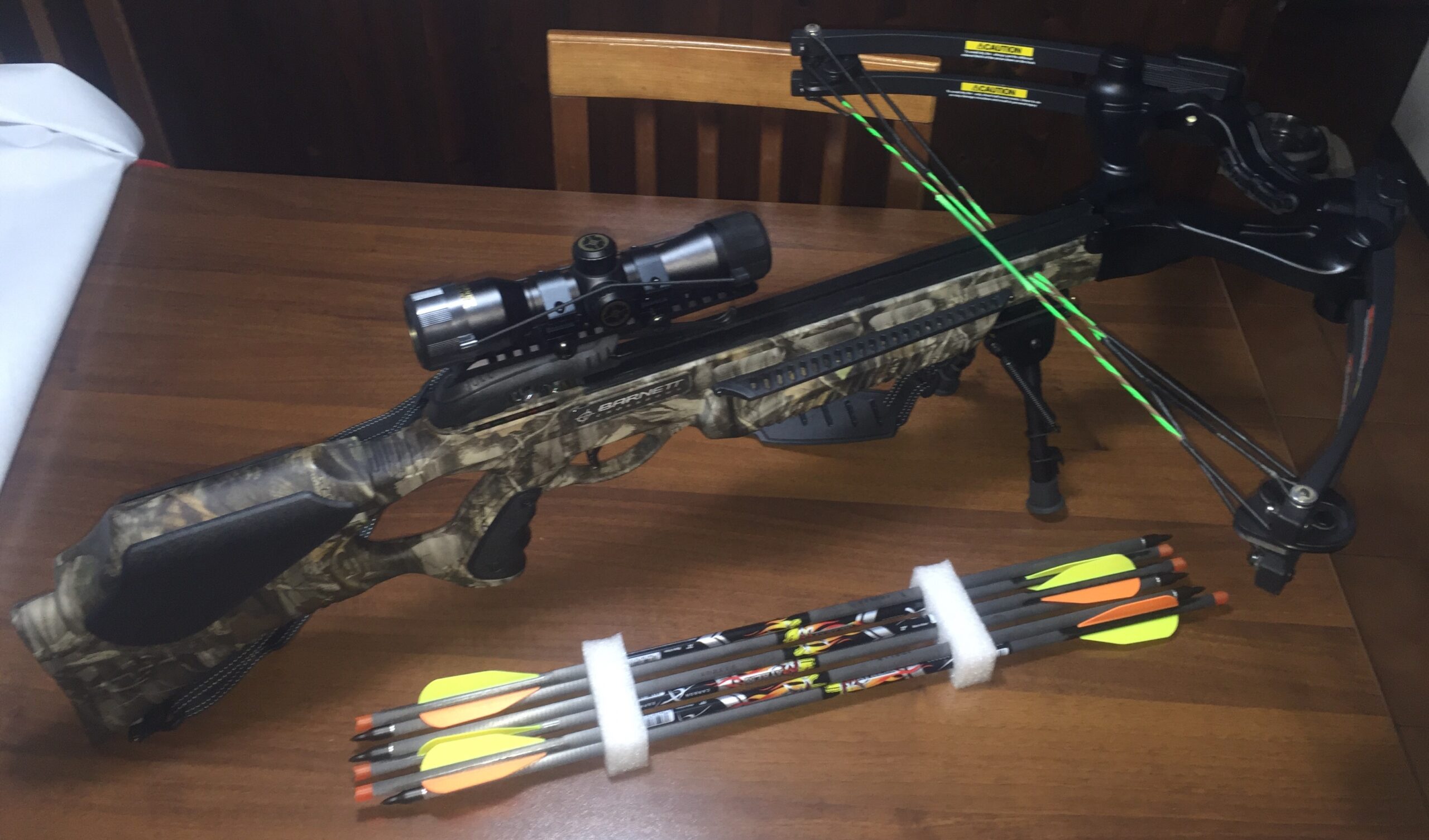 La velocità dei dardi nella misura di 20” con il peso di 425 grani è di 350 fps: non male come velocità di uscita del dardo. La Penetrator viene fornita di serie con un’ottica Barnett 4×32 non illuminata, oppure con un red dot a tre punti sempre Barnett a seconda delle preferenze di tiro. La balestra viene inoltre corredata di faretra e tre dardi con punta field della Easton, modello Headhunter abbastanza validi e precisi, purtroppo però impossibili da reperire sul mercato italiano. Io, ad esempio, utilizzo dardi da 22” Carbon Express Mayhem o sempre da 22” Maxima Blue Streak, al fine di stressare meno i flettenti e rendere il volo del dardo più stabile.